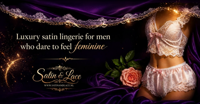 Luxury Purple Satin Panties – Glossy Lace Trim Lingerie for Men