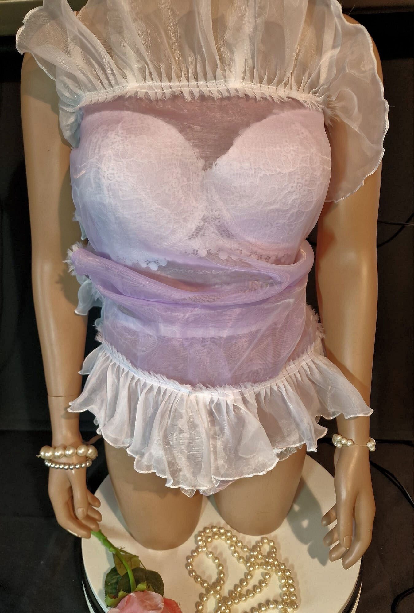 It's a complete set with matching ruffled bottoms, making it incredibly sexy.